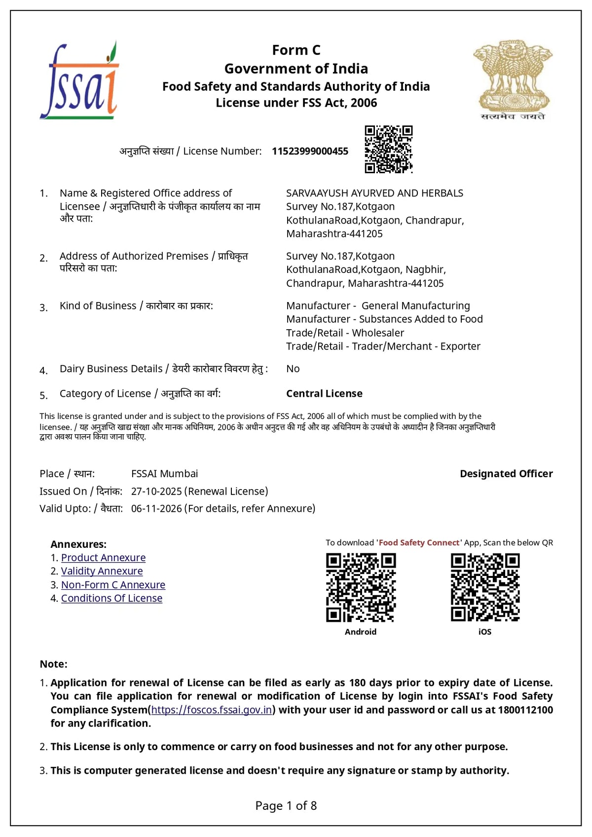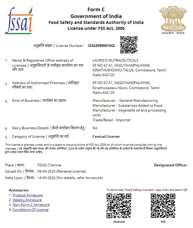 FSSAI License Number: 11522020000306